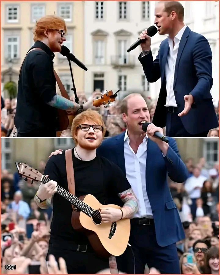 In a moment that will be etched in royal and music history, the world watched in awe as Prince William made an unannounced appearance beside Ed Sheeran at Windsor Castle. No introduction. No spotlight. Just quiet reverence as the future King stepped onto the stage during Sheeranโs sold-out charity concert. Turning to the microphone, William softly dedicated the performance โfor Dad, Mum, and Granny,โ his voice trembling just slightly before Sheeran began the opening chords of *โThinking Out Loud.โ*