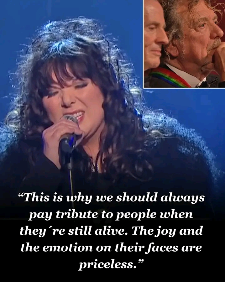 In front of a packed and breathless crowd at the Kennedy Center, Heart delivered one of the most emotional, soul-stirring renditions of *“Stairway to Heaven”* ever performed. With Led Zeppelin themselves seated in the balcony — Robert Plant, Jimmy Page, and John Paul Jones visibly moved — the tribute became more than just a performance. It became a sacred moment in rock history.
