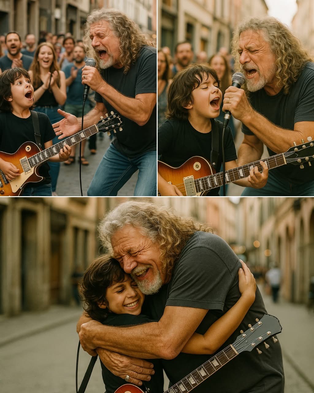 Plant stepped forward, the sea of onlookers parting as if royalty had arrived. He smiled, knelt to Bay’s level, and whispered, “I played this with Jimmy once. Mind if I join?”