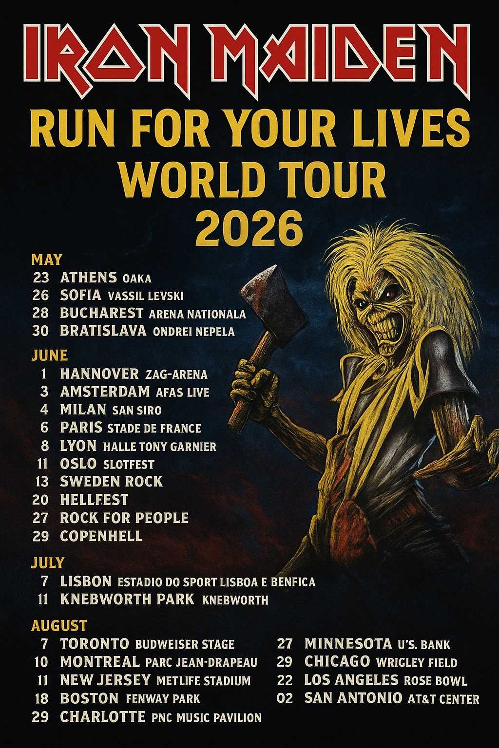 Iron Maiden have confirmed their 2026 Run For Your Lives world tour dates, marking yet another epic leg for the legendary metal band.