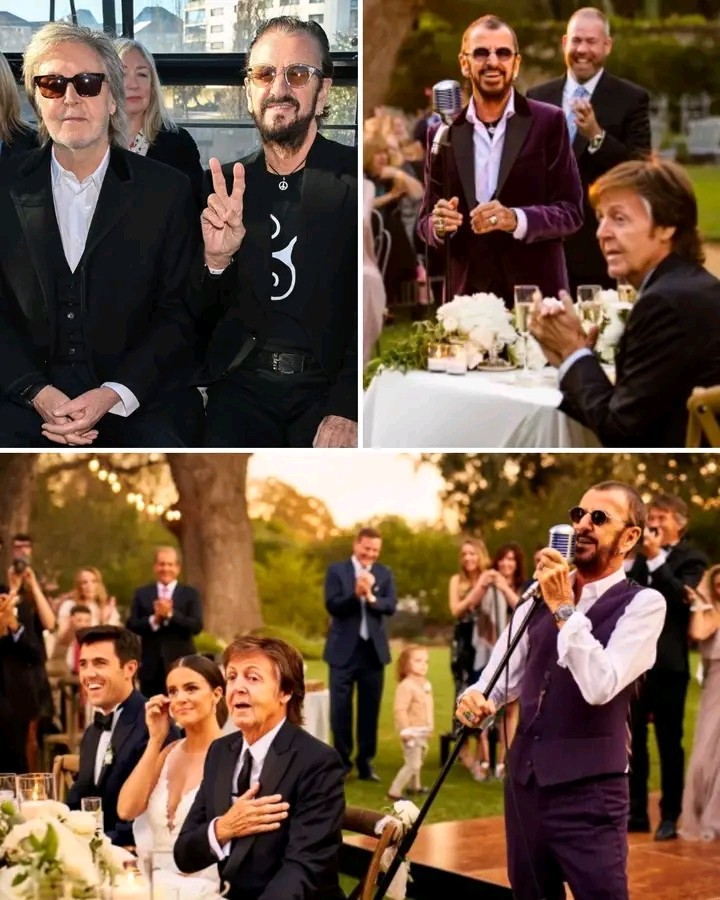 As the evening’s final toast lingered in the warm night air, Ringo Starr stepped forward from the edge of the crowd. There was no spotlight, no announcement—only the soft creak of a chair, a quiet clearing of the throat, and a guitar in his hands. Paul McCartney, seated nearby, turned toward his old friend. His eyes welled, not with sadness, but with memory.