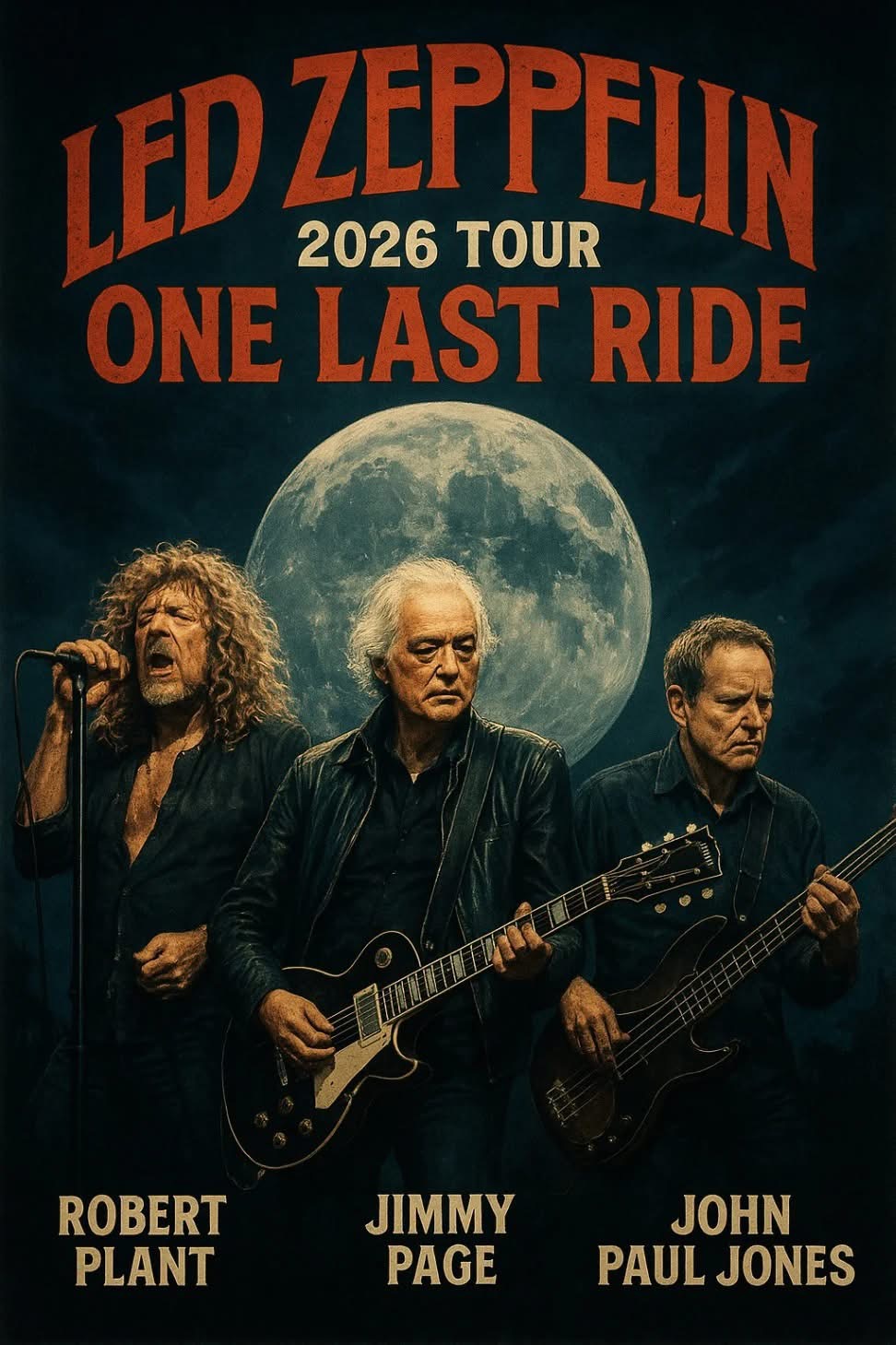 In a move that has electrified the music world, legendary rock band *Led Zeppelin* has announced their long-anticipated 2026 Farewell Tour, aptly titled *“One Last Ride.”* Billed as their final live journey together, the tour promises to be a transcendent celebration of the band’s enduring legacy—fusing blistering guitar riffs, thunderous rhythms, and soaring vocals into an unforgettable live experience.