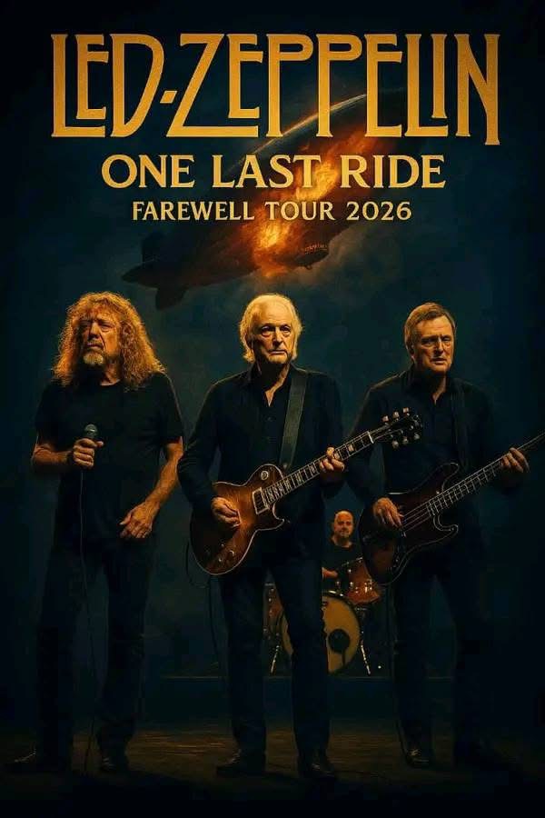Led Zeppelin has officially revealed a 2026 “One Last Ride” farewell tour, marking what the band is calling a final world run. The tour is set to begin June 10, 2026, at LA’s SoFi Stadium, with additional dates and cities unveiled over the past week on their Facebook page .