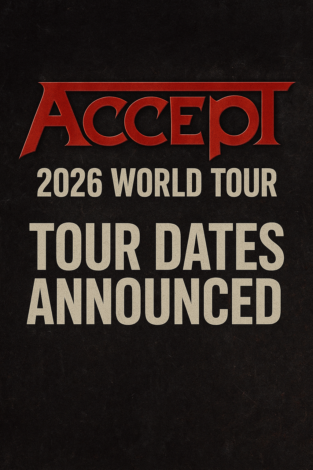 Legendary German heavy metal band **Accept** has officially announced their long-awaited **2026 world tour**, sending shockwaves of excitement through the global metal community. Known for their blistering riffs, thunderous rhythms, and iconic anthems like *Balls to the Wall* and *Metal Heart*, the band is gearing up to deliver one of their most powerful tours to date. Fans have been eagerly anticipating this announcement, and now the wait is finally over—dates and cities are confirmed.