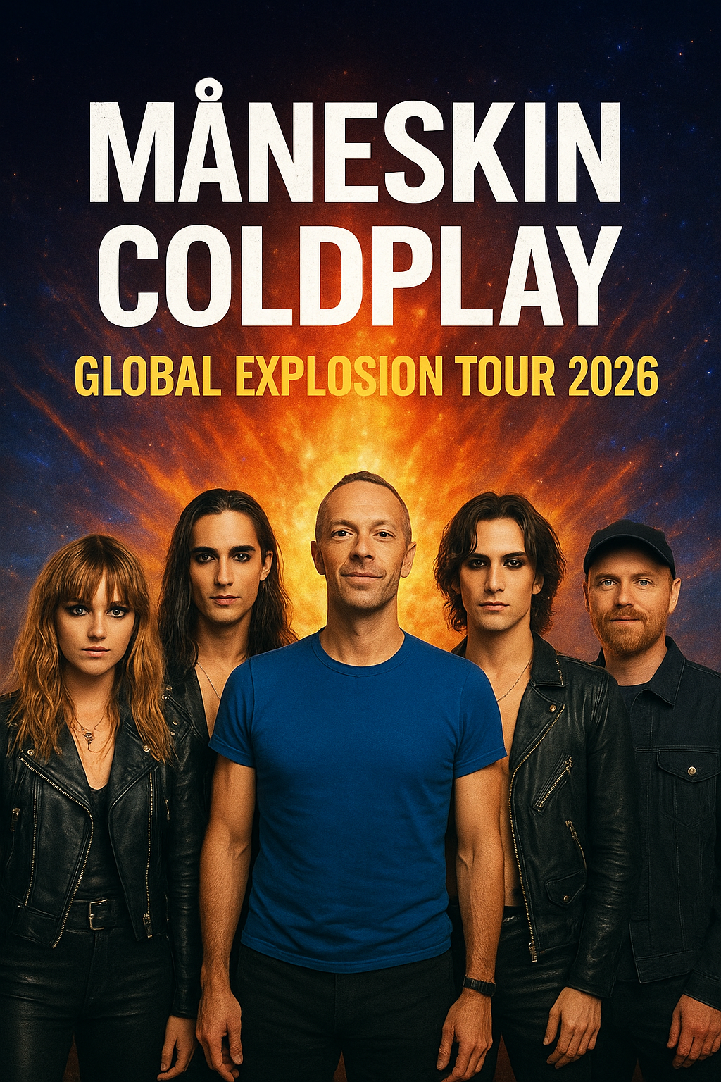 In a stunning announcement that has electrified the music world, Italian rock sensations **Måneskin** and British superstars **Coldplay** have revealed plans for a monumental joint world tour titled the **“Global Explosion Tour 2026.”** Set to kick off in March 2026, the tour promises to merge the fiery energy of rock rebellion with the ethereal beauty of stadium anthems—creating one of the most ambitious musical collaborations of the decade.