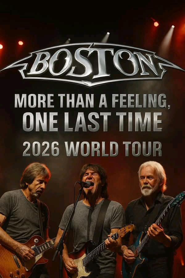 Rock legends Boston have officially announced their 2026 World Tour, titled “More Than a Feeling, One Last Time,” marking a monumental celebration of their legendary career and timeless sound. Known for defining an era of classic rock with soaring guitar solos, powerful vocals, and unforgettable anthems, Boston’s farewell tour promises to be an electrifying sendoff — a journey through decades of music that has inspired millions around the world.