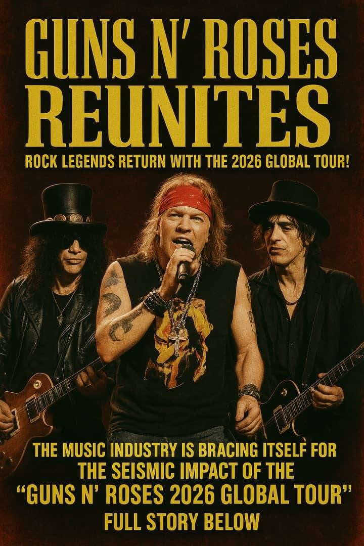 The “Guns N’ Roses 2026 Global Tour” isn’t just a nostalgic celebration — it’s a seismic musical event that promises to reintroduce the band’s raw, rebellious energy to a new generation of fans. The tour will span continents, hitting major cities in North America, Europe, South America, Asia, and Australia, with over 50 dates already confirmed.