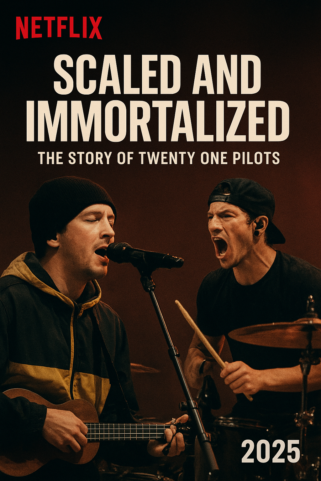 Netflix has officially released a brand-new 2025 documentary centered on the American genre-blending sensation **Twenty One Pilots**, diving deep into their artistic evolution, personal struggles, and their rise from underground fame to global stardom. Titled **“Scaled and Immortalized: The Story of Twenty One Pilots,”** the film offers an unfiltered and emotional look at the journey of frontman **Tyler Joseph** and drummer **Josh Dun**, chronicling their transformation into one of the most influential modern bands of their generation.