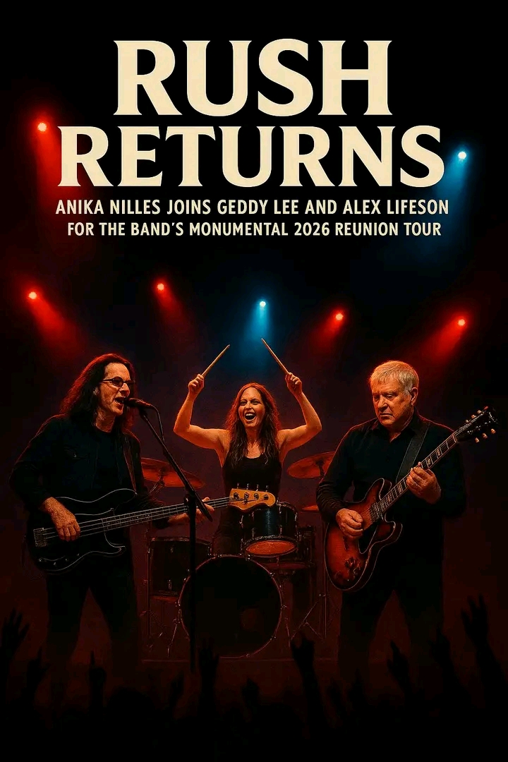the rock world is buzzing with excitement as legendary canadian rock band rush officially announces their long-awaited 2026 reunion tour, titled the fifty something tour. this historic comeback marks the band’s first tour in more than a decade, and it comes with a monumental addition: acclaimed german drummer anika nilles will be joining geddy lee and alex lifeson on stage, taking on the near-mythic role once held by the late, great neil peart.