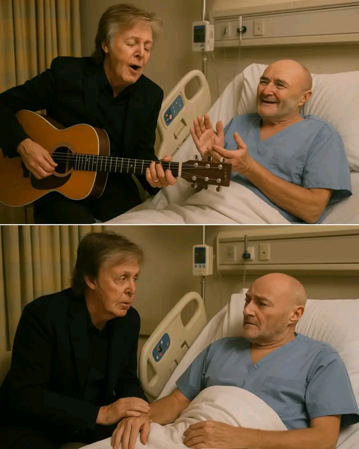 No cameras. No fanfare. Just a quiet hospital corridor and a moment no one saw coming. Paul McCartney — music legend, cultural icon — appeared with a simple bouquet of daisies in one hand and his guitar slung over his shoulder. He had come not as a celebrity, but as a friend. His destination: Phil Collins’ room, where the Genesis drummer and longtime friend was recovering from a serious health setback.