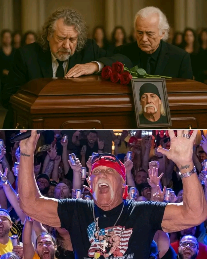 No One Expected To See Them There, Yet As The Doors Of The Chapel Opened, Rock Legends Robert Plant And Jimmy Page Quietly Walked In, Dressed In Black, Heads Bowed, To Pay Their Final Respects At Hulk Hogan’s Funeral, A Surreal Crossing Of Worlds As Two Of Led Zeppelin’s Greatest Stood Among Wrestlers, Fans, And Old Friends Of The Wrestling Icon, Witnesses Saying The Room Fell Silent When Plant Placed A White Lily Beside The Casket, While Page Rested His Hand On It For A Moment Of Prayer, The Pair Later Sharing Stories About Meeting Hogan Backstage At Shows, Calling Him “A Larger-Than-Life Spirit,” Leaving Mourners In Awe Of The Unexpected Tribute, And Reminding Everyone Present That Even Icons Come To Honor Icons .