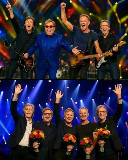 As Paul took the lead, his voice warm and inviting, Elton’s fingers danced effortlessly across the piano keys, weaving a tapestry of sound that lifted the song to new heights. Eric Clapton, usually known for his fiery solos, choked up visibly, his guitar crying out with raw emotion, a silent tribute to the power of the moment. Sting’s harmony floated like a prayer, adding layers of depth and soul that transcended mere performance.