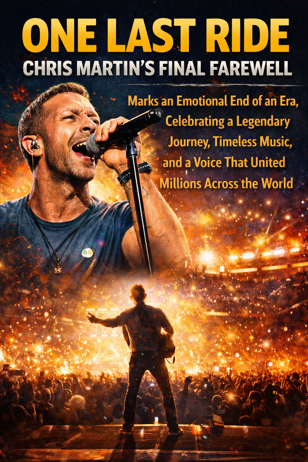 The music world stands still as Chris Martin prepares for what is being called *One Last Ride*—a deeply emotional farewell that signals the closing of one of the most influential chapters in modern music history. For decades, Martin’s unmistakable voice and heartfelt songwriting helped define a generation, transforming simple melodies into global anthems of hope, love, loss, and unity.