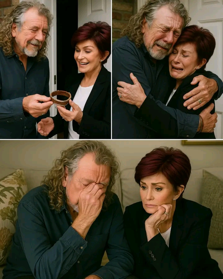 One rainy afternoon on the outskirts of London, Sharon Osbourne sat silently on the sofa, the house now eerily quiet after Ozzy’s passing. Suddenly, the doorbell rang. Robert Plant — the Led Zeppelin legend and Ozzy’s longtime friend — appeared with a sorrowful expression. Without saying much, he opened a worn wooden box. Inside was a frayed leather bracelet lined with silver, the very one Ozzy wore during his 1972 Black Sabbath tour. “He gave this back to me after the accident… and said, ‘If I go first, give this to Sharon.’” Sharon’s hands trembled as she took the keepsake, tears streaming down her face. She clutched the bracelet to her chest and whispered, “He never forgot me…” The room fell into a silent wave of grief, heavy with love and memory…..