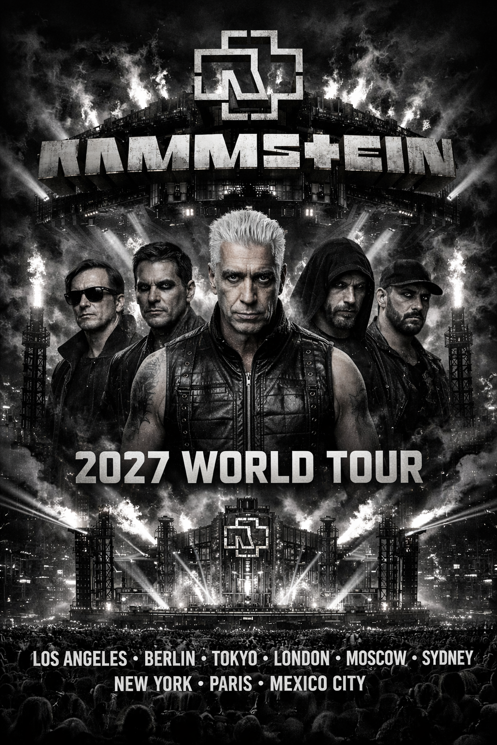 The legendary German industrial metal band Rammstein has set the global music scene ablaze with the announcement of their explosive 2027 World Tour. Known for their electrifying performances, thunderous sound, and jaw-dropping pyrotechnics, the band is once again preparing to deliver a spectacle that promises to captivate millions of fans across continents.