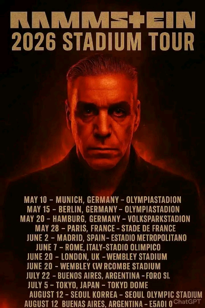 But beyond the fire, the steel, and the spectacle, the 2026 Stadium Tour marks something deeper: a celebration of a band that has spent decades defying expectation, transcending language barriers, and forging one of the most devoted global fanbases in rock history. With tickets expected to sell out within minutes, this tour is already being hailed as **Rammstein’s defining live era**—a once-in-a-generation event that will push the boundaries of what a concert can be.