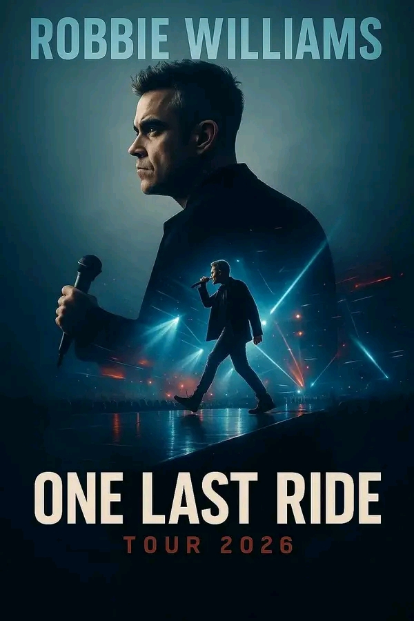 Robbie Williams, the magnetic showman who defined a generation with his unmatched charisma and wit, has officially announced his 2026 world tour, **“One Last Ride.”** Described by Williams as “a love letter to laughter, life, and the stage,” the tour is set to kick off in **Dublin on April 18, 2026**, before sweeping across **Europe, North America, Australia, and South America** in what promises to be one of the most emotionally charged tours of his career.