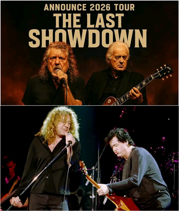 Rock history is being rewritten — Jimmy Page and Robert Plant, the legendary duo behind Led Zeppelin’s greatest anthems, have officially announced their long-awaited 2026 world tour, aptly titled **“The Last Showdown.”** This tour marks the first time in over two decades that the iconic guitarist and frontman will share the stage for a full-scale global run, reigniting the spirit of one of the most influential bands in music history.