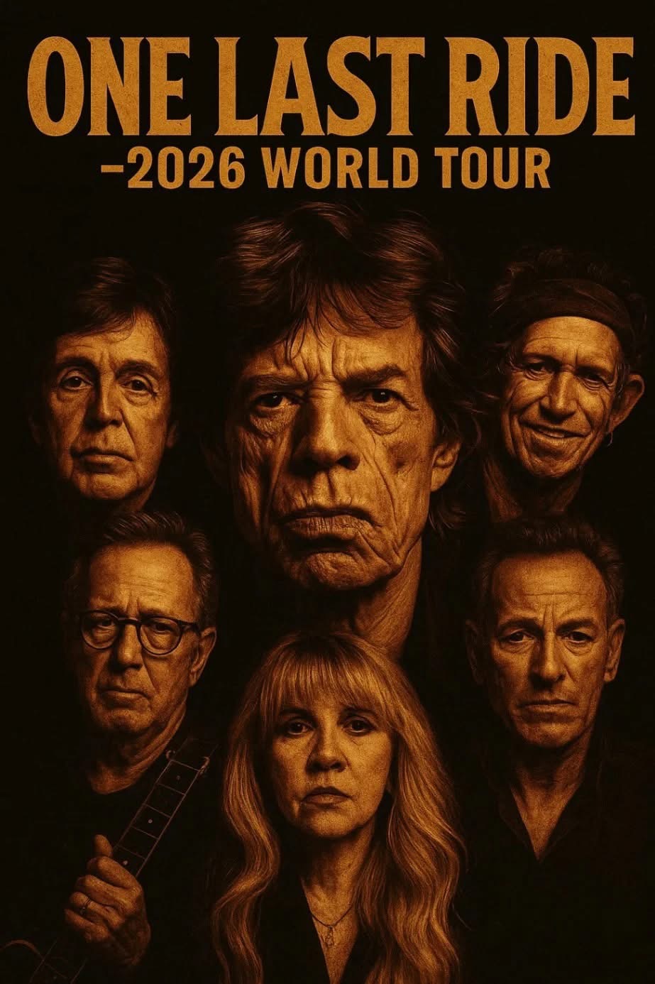 In an electrifying moment for music history, six of rock’s most iconic figures—**Mick Jagger, Keith Richards, Paul McCartney, Eric Clapton, Stevie Nicks**, and **Bruce Springsteen**—have announced a once-in-a-lifetime global tour: **“ONE LAST RIDE.”** Set for 2026, this unprecedented reunion promises to be the ultimate celebration of rock & roll, uniting generations of fans in a thunderous tribute to the genre that changed the world.