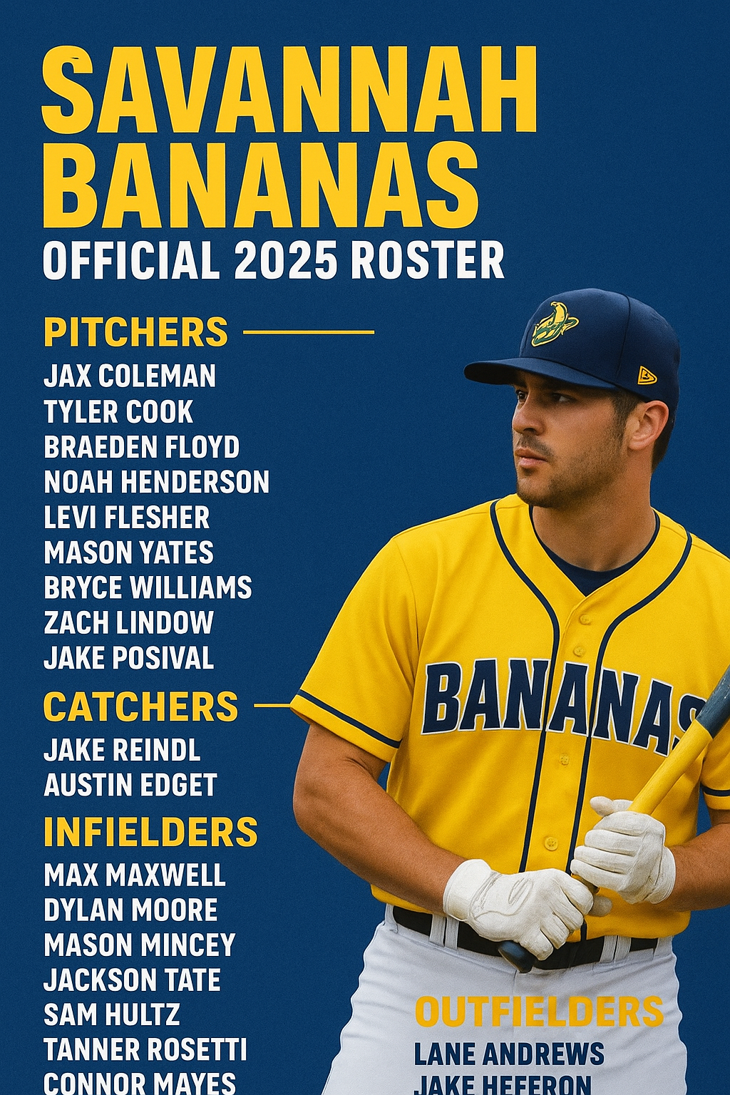 In a move that has fans buzzing with anticipation, the Savannah Bananas’ head coach has finally announced the team’s official 2025 roster, setting the stage for another unforgettable season of Banana Ball. Known for blending elite baseball talent with show-stopping entertainment, the Bananas have once again crafted a lineup that promises to thrill both purists of the game and newcomers drawn to the spectacle.