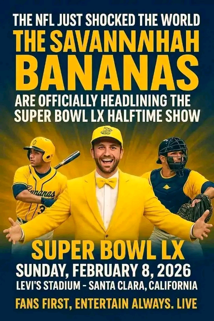 In an unprecedented announcement, the Savannah Bananas are set to headline the Super Bowl LX halftime show at Levi’s Stadium, marking a historic first for the eccentric and wildly entertaining baseball team. Known for their high-energy performances, comedic flair, and fan-centric approach to the sport, the Bananas promise to bring a halftime experience unlike anything audiences have seen before.