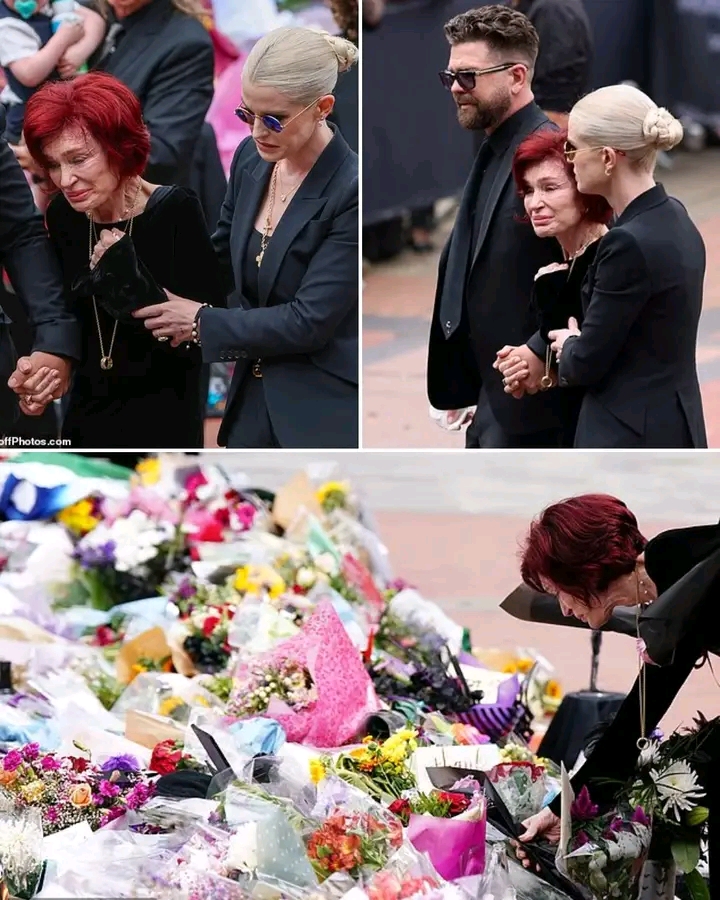 Sharon Osbourne, cloaked in black and shadowed by grief, stood before a sea of flowers, handwritten letters, candles, and photographs—tributes from fans who had come from around the world to honor Ozzy. The weight of the moment pressed down like the gray Birmingham sky overhead. As the crowd hushed, watching her with aching reverence, Sharon faltered. Her body trembled, her steps slowed, and then—she nearly collapsed.