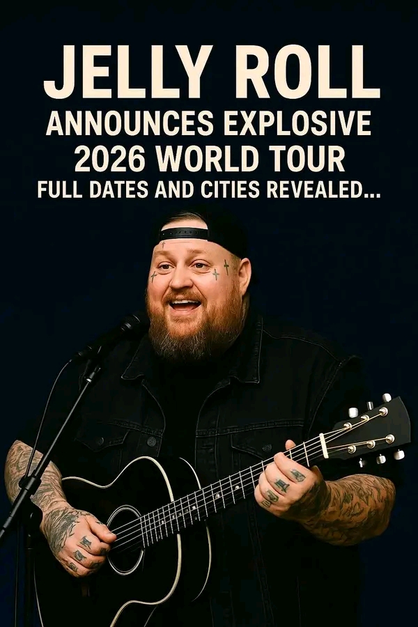 Shockwaves are rippling across the music world as Jelly Roll officially announces his massive 2026 World Tour, a global spectacle set to redefine the boundaries of live performance energy. Known for his gritty authenticity and soul-stirring fusion of country, rock, and hip-hop, the multi-genre powerhouse is taking his signature sound to fans around the globe in what promises to be his most ambitious tour yet.