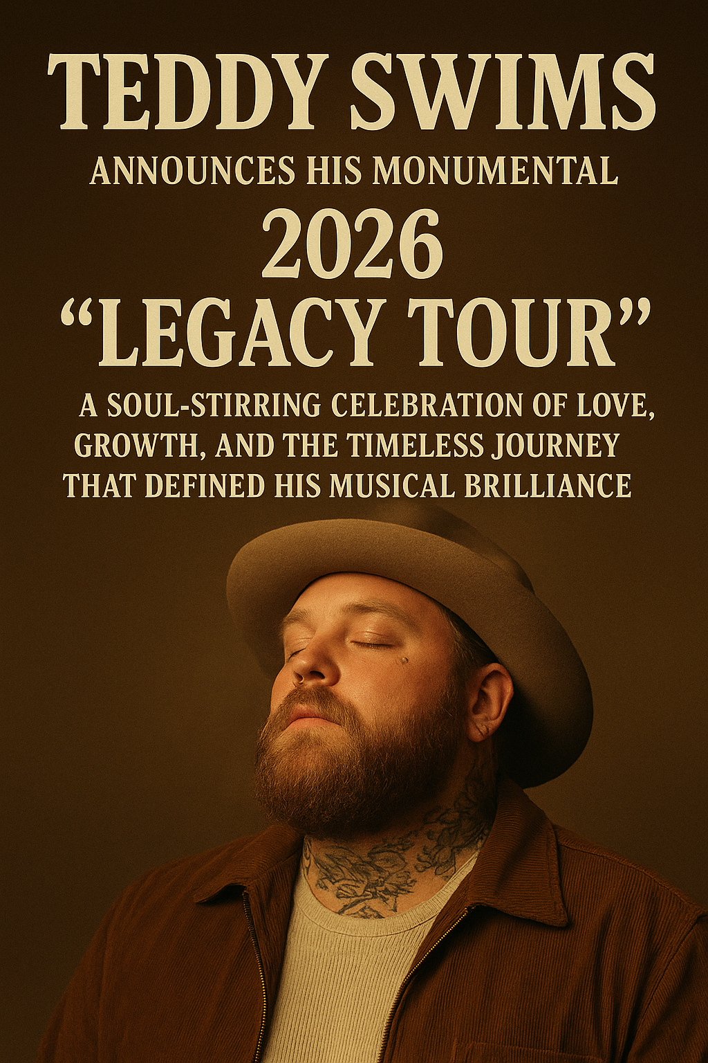 Teddy Swims, the powerhouse vocalist known for his soulful voice and heartfelt storytelling, has officially announced his monumental 2026 “Legacy Tour” — a global celebration of love, growth, and the timeless journey that has defined his extraordinary musical brilliance. The tour, set to kick off in early spring 2026, promises to deliver the most emotionally charged performances of his career, blending vulnerability, passion, and pure artistry into a once-in-a-lifetime concert experience.