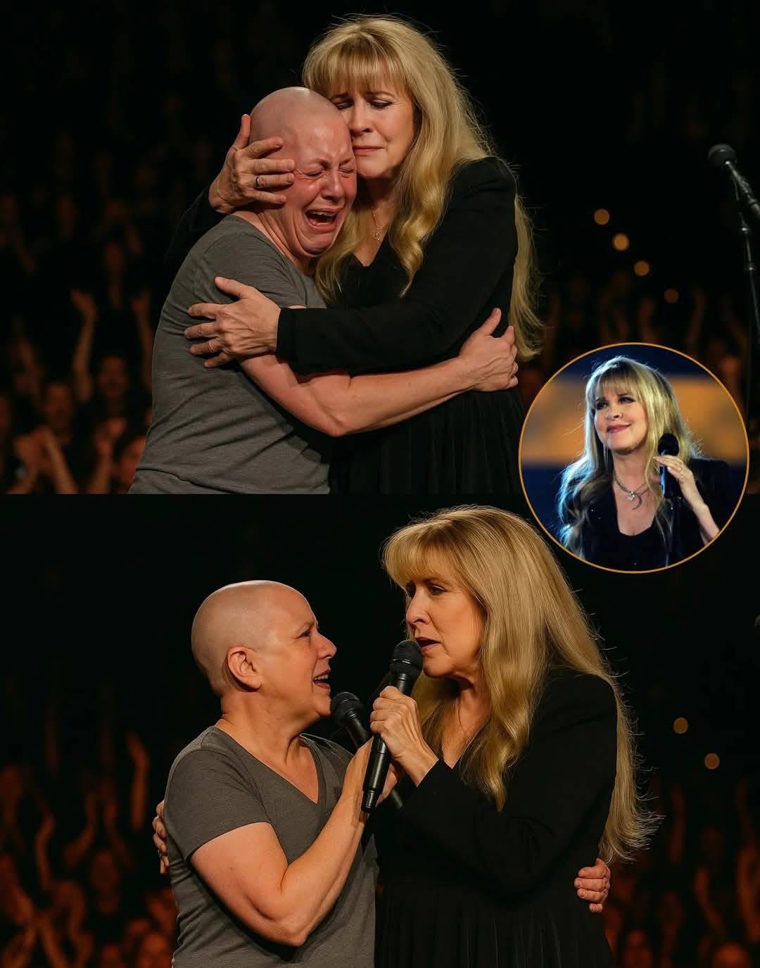 Midway through her performance, Stevie paused, her voice dropping to a tender hush. “There’s someone very special here tonight,” she said, drawing the attention of every soul in the packed venue. From the side of the stage, a frail woman appeared, guided carefully by loved ones. Her eyes glistened with joy, disbelief, and courage. She was a lifelong fan, battling a terminal illness, with one final wish — to meet the woman whose music had carried her through life’s highs and heartbreaks. Stevie had promised her it would happen, and that night, she kept her promise.