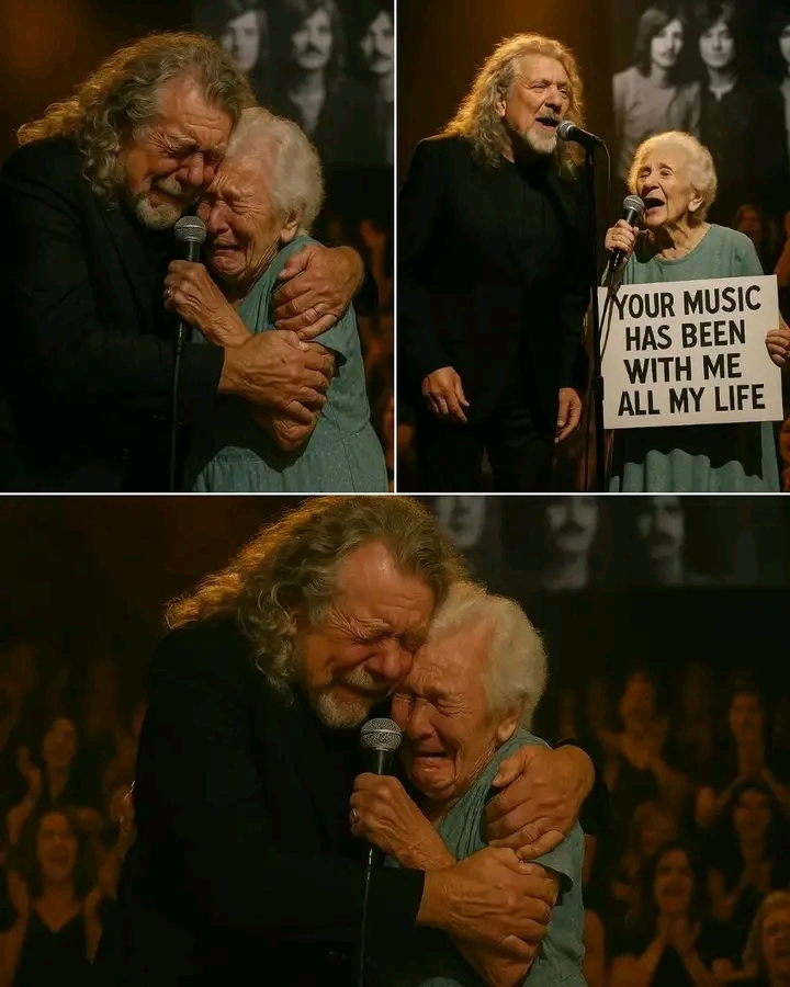 Plant noticed. Mid-verse, he stopped. The band fell silent. For a heartbeat, time stood still. Then, with that familiar half-smile — equal parts warmth and wonder — he beckoned her toward the stage.