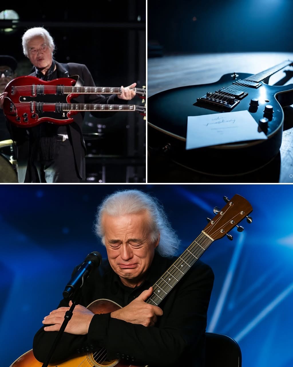 The final chord echoed like the last breath of an era, ringing through the July air over 50,000 silent souls. No pyrotechnics, no curtain call. Just Jimmy Page, bowed by time but still holding the weight of a thousand riffs, knelt slowly at center stage.