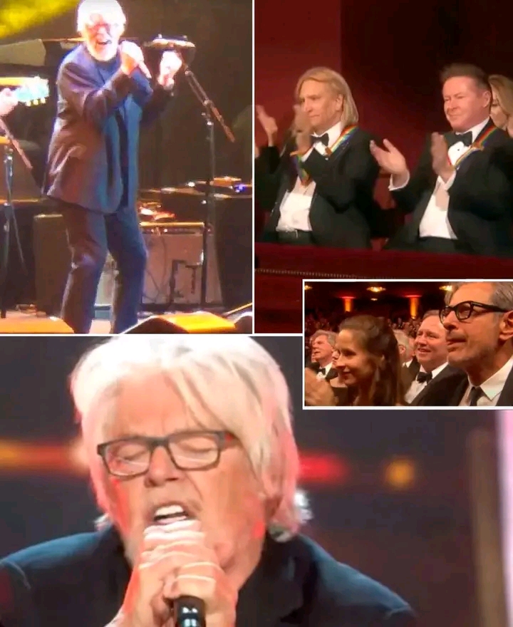 But it was Deacon Frey—Glenn’s son—who delivered the night’s most emotional blow. Standing where his father once stood, guitar in hand, he stepped up to the mic for “Take It Easy.” He didn’t imitate Glenn. He honored him. His voice, soft but steady, wrapped the audience in memory. As the final chords rang out, Don Henley stepped forward, eyes glassy, and said, “This one’s for you, Glenn. You’re in our hearts tonight… and the music goes on.”