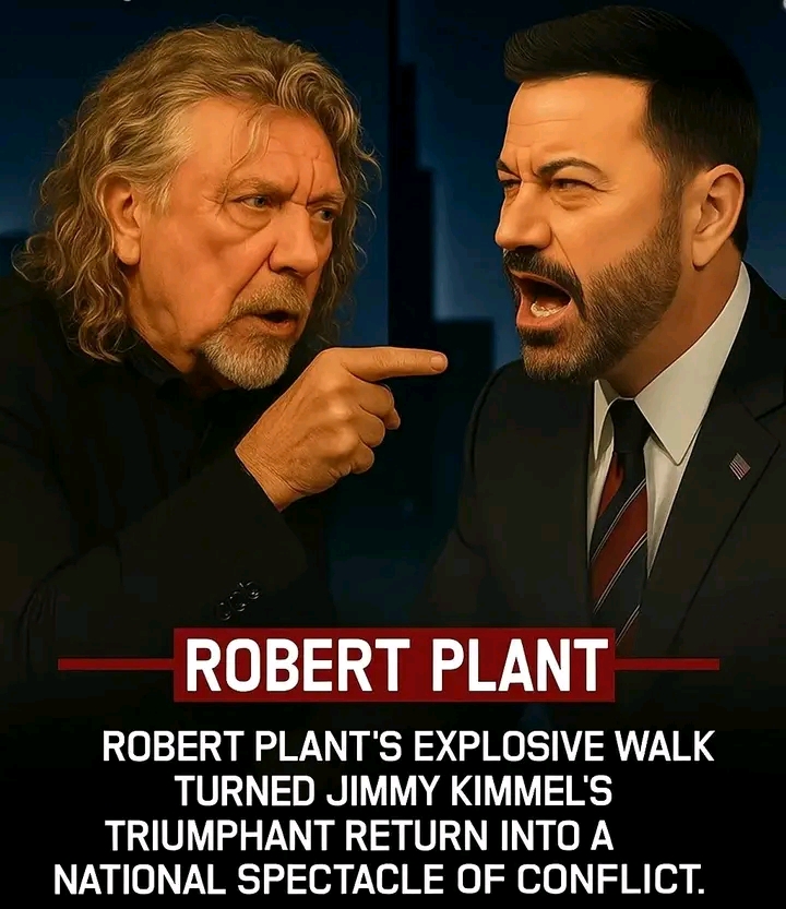 The crowd split instantly, cheers clashing with boos. Kimmel, face flushed, shouted: “This is my show!” But Plant seized a mic from his jacket, slammed it onto the desk, and roared: “America’s sick of mockery. This isn’t comedy — it’s cowardice!” Then he stormed off, leaving chaos in his wake.