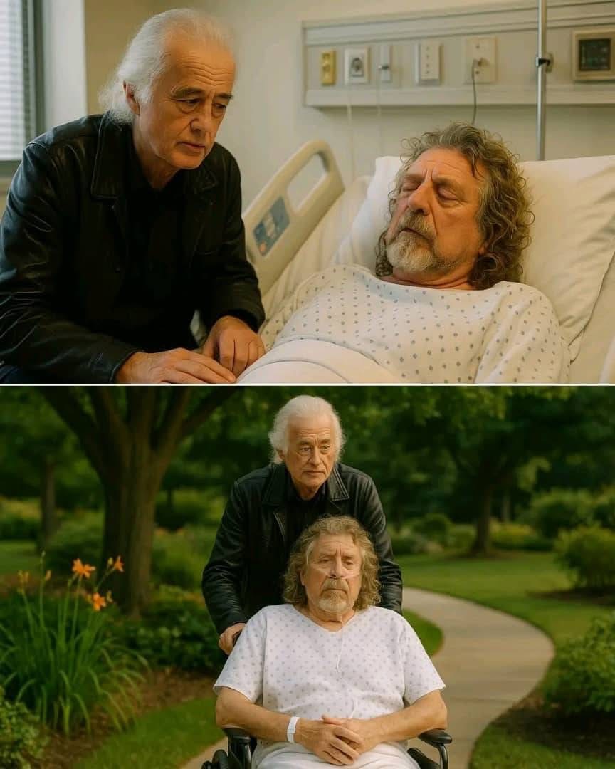 Within hours of his admission, longtime bandmate and friend Jimmy Page arrived at the hospital, refusing to leave Plant’s side. Witnesses say the 80-year-old guitarist was “visibly shaken but determined to be there for his friend,” with one insider revealing that Page has remained in Plant’s room, holding his hand and quietly speaking to him as medical staff closely monitor the singer’s condition.