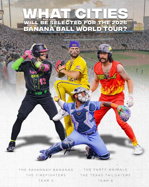 Each game continues to mix on-field competition with over-the-top showmanship—dance routines, fan-first participation, and wild Banana Ball rules that pair humor with high-energy athleticism. The 2025 tour closes with a “Tour Championship” at Savannah’s Grayson Stadium, setting the stage for the league’s 2026 debut.