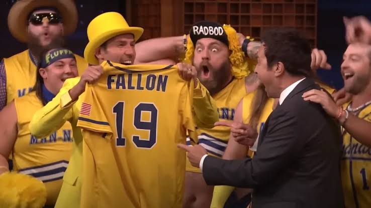 Fallon, clearly delighted by the surprise, tried to join in the kickline, but was quickly told that only official members of the Bananas were allowed. That playful moment set up the big reveal: the team presented Fallon with his very own Savannah Bananas jersey, number 19, officially naming him an honorary member. The gesture was met with thunderous applause from the studio audience and a beaming smile from Fallon, who held the jersey high in celebration.