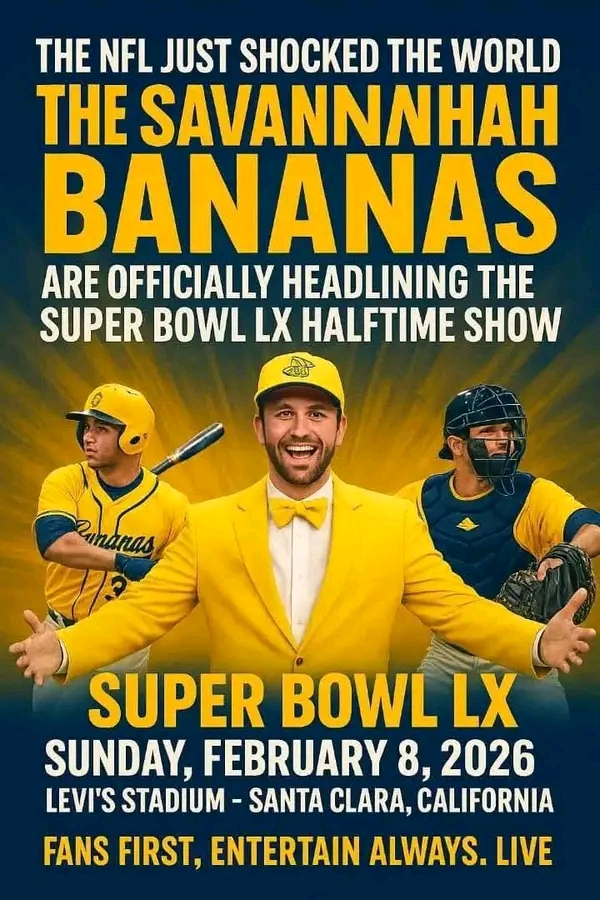 ESPN VERIFIED NEWS:** The Savannah Bananas, the baseball team that has redefined sports entertainment with their outrageous antics and infectious energy, have officially been announced as the headliners of the **Super Bowl LX Halftime Show** at Levi’s Stadium in Santa Clara, California. This marks the first time in history that a sports team—not a band or solo artist—will lead the world’s most-watched musical spectacle.