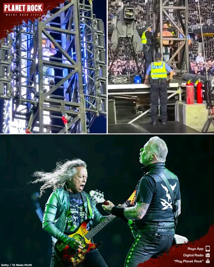 Two Metallica fans were arrested after a daring stunt during the band’s concert in Perth, Australia, on Saturday night. The incident occurred as the heavy metal legends were performing their penultimate song, the iconic *…And Justice for All* classic “One,” at Perth’s Optus Stadium — a moment that quickly turned chaotic when two concertgoers decided to climb one of the towering speaker stacks.