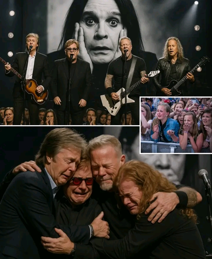 Under the blackened dome of London’s O2 Arena, history was made in a way no one could have predicted. As the lights dimmed, and the audience settled into an anticipatory hush, three legendary figures took the stage—Paul McCartney, the embodiment of timeless melody, Elton John, the master of poignant piano ballads, and Metallica, whose guitars roared like thunder through the heavens. But this wasn’t just a concert. It was a sacred moment, a tribute to a man who had reshaped the very fabric of rock ‘n’ roll—Ozzy Osbourne.