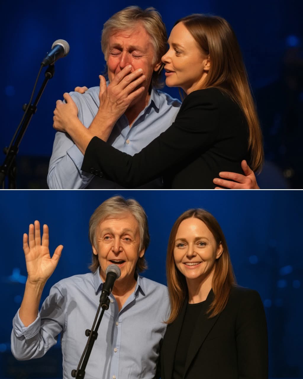 Paul turned—and froze. The moment their eyes met, decades of music, memories, and fatherhood seemed to flood the space between them. Stella embraced him tightly, leaning in to whisper, “Your music raised me.”