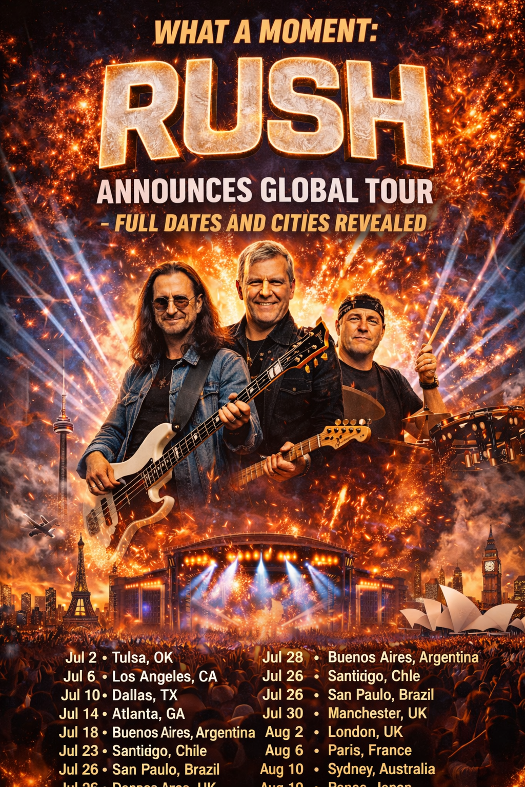 As tickets prepare to go on sale, anticipation continues to skyrocket. Fans across continents are already counting down the days, planning travel, and reliving memories of past Rush concerts. One thing is certain: this global tour is more than just a series of shows. It’s a celebration of legacy, artistry, and the enduring connection between Rush and millions of fans worldwide. For rock lovers everywhere, this truly is a moment to reme