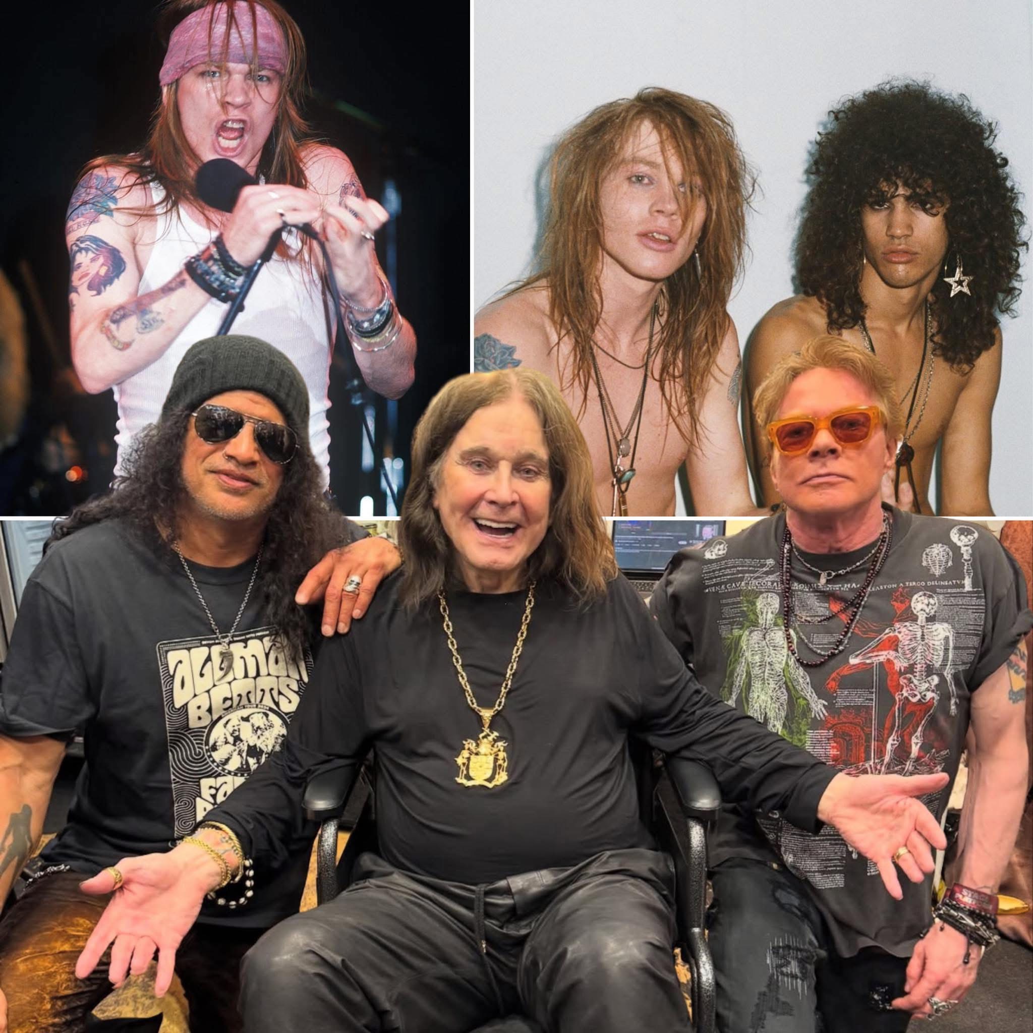 When Guns N’ Roses took the stage at the Ozzy Osbourne tribute concert, it wasn’t just another performance — it was a resurrection. Axl Rose stood defiant at the mic, his voice still laced with venom and soul, while Slash’s Les Paul snarled with every note, his signature top hat casting a familiar shadow over a face etched by decades of chaos and survival.