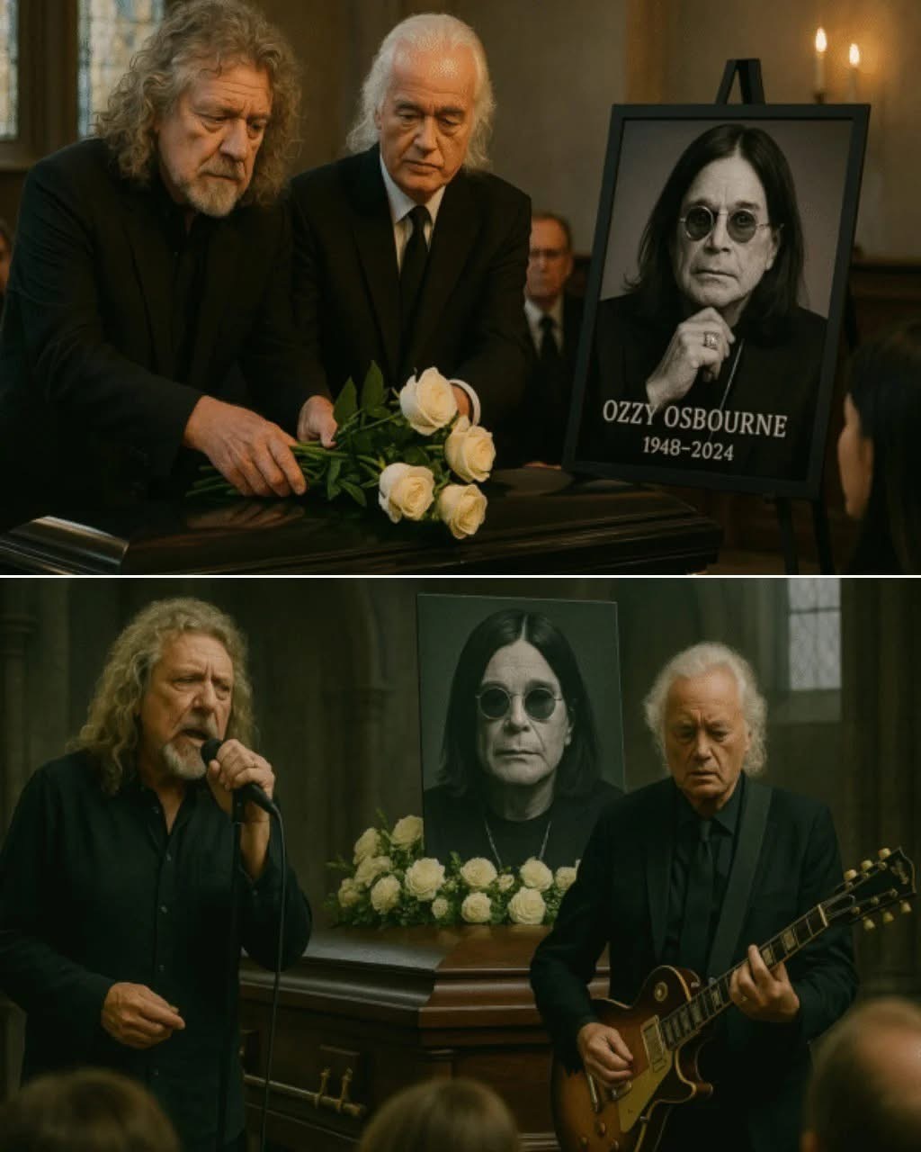 A slow, aching riff filled the chapel—bluesy, raw, and deliberate. It wasn’t a performance. It was a eulogy. Robert joined in, his voice rising like smoke—haunted and powerful, but threaded with heartbreak. The song they gave Ozzy wasn’t a hit or a headline. It was a lament, stripped of everything but love and memory. A conversation between past and present, between the living and the lost.
